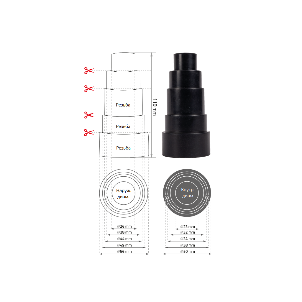 Aдаптер для шланга "NTools ADO 50" (диам. 23/26, 32/38, 34/44, 38/49, 50/56 мм)