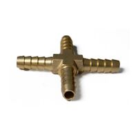 Прочный латунный четверник, предназначенный для использования с пневматическими шлангами диаметром 8 мм. Он используется для разветвления пневматических линий, смонтированных в мастерской.