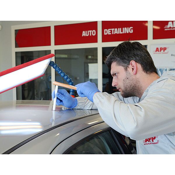 Пробойник для забивания (отстукивания) бугорков на кузове автомобиля. При ремонте выступов и работе инструментами для удаления вмятин с помощью этого изделия можно осаживать вмятины ударяя по ним. Краска при этом материалом пробойника не повреждается.