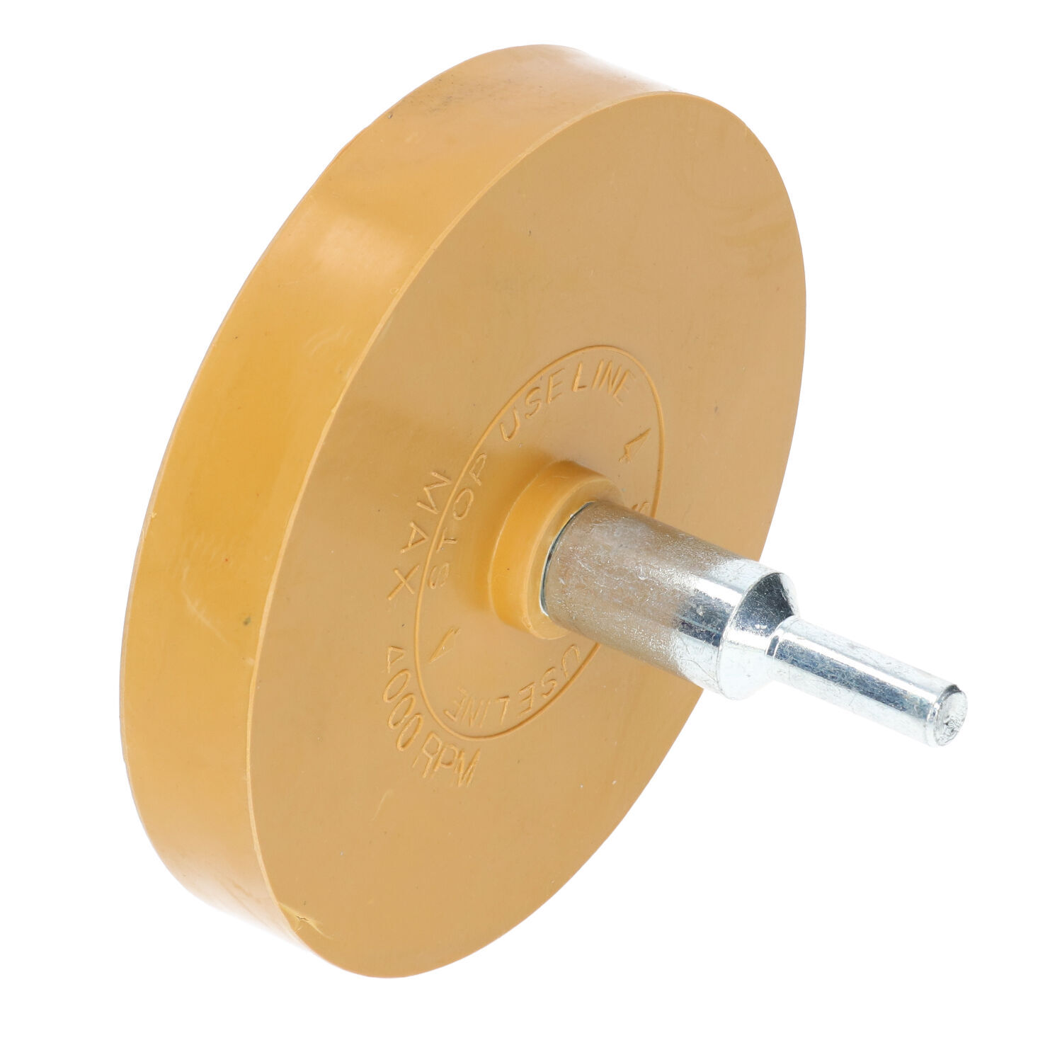 Диск из твердого каучука для механического удаления двухстороннего скотча и остатков наклеек с декоративных панелей и кузовов. Во время удаления клея, диск не царапает и не повреждает покрывного слоя лака. Крепится к дрелям и шуруповертам при помощи адаптера.