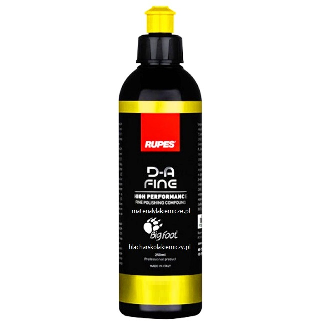 финишной обработки после применения пасты для грубой полировки. Паста RUPES D-A FINE безопасна для применения в автомастерских и эффективна при использовании на покрывном лаке, однослойной краске, гелькоуте, лаке и других видах покрытий.