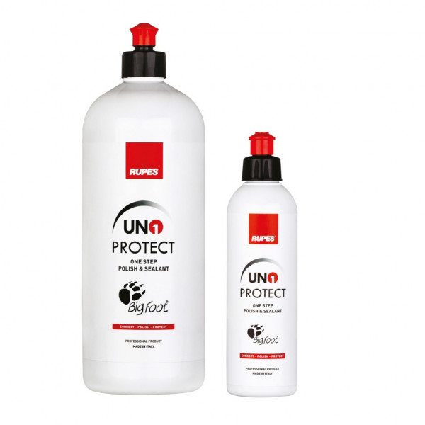 UNO PROTECT это запатентованный состав из натуральных восков, сшитых полимеров и абразива, разработанный компанией RUPES. Это настоящий продукт "все в одном" разработан, чтобы обеспечить быстрое устранение мелких и умеренных дефектов поверхности, добиваясь высококачественной финишной отделки и длительной полимерной защиты за "один шаг". В отличие от традиционных одношаговых продуктов, которые, в основном, делают упор на натуральные воски, UNO PROTECT использует современную химию сшитых полимеров для создания высокоглянцевого защитного слоя, стойкого до 90 дней.