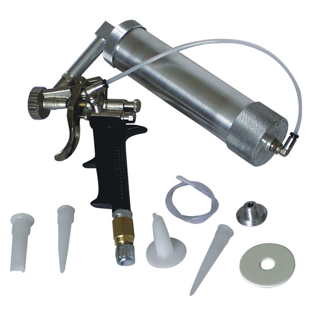 Пистолет-распылитель NTools PM для нанесения однокомпонентных полимерных напыляемых герметиков (MS - Polymer) в тубах/картриджах с максимальным объемом 310 мл. Позволяет воссоздать заводскую текстуру «чешуя/коса» в местах сварки и стыковки, а также антигравийное покрытие и ровные валики массы.