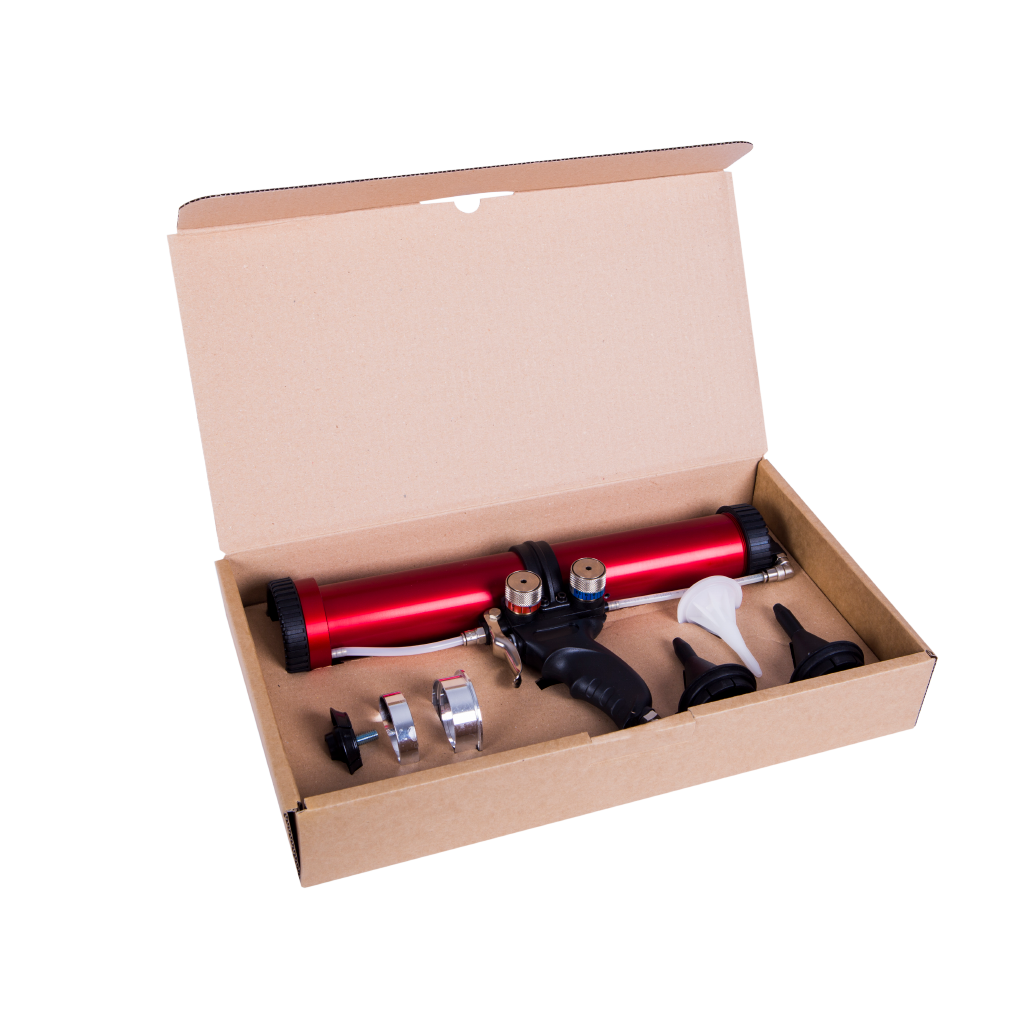 NTools PWW 400 представляет собой поршневой экструдер и пистолет-распылитель для герметиков в одном инструменте. Предназначен для нанесения напыляемых герметиков в картриджах максимальной емкостью 310 мл. Позволяет воссоздать заводскую текстуру «чешуя/коса» для сварных швов и стыков деталей. С помощью пистолета можно получить текстуру антигравия и очень точно сформировать уплотнительные валики из любого вида массы, упакованной в картридж или саше емкостью не более 400 мл.