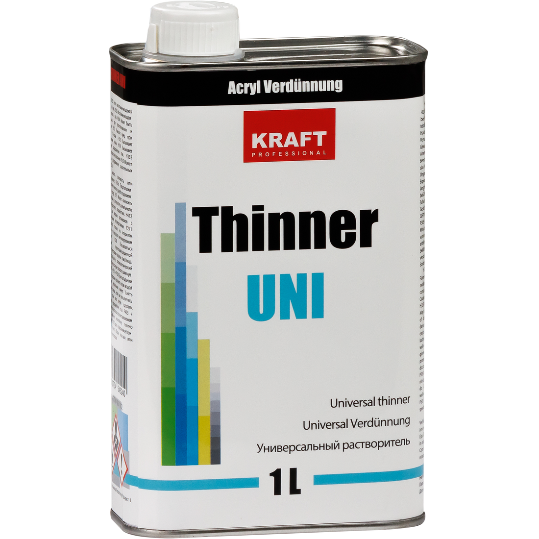 KRAFT "THINNER UNI" - разбавитель универсальный для акриловых лаков, грунтов и красок (солидов, металликов и перламутров, двухкомпонентных акрилов). Предназначен для разбавления лакокрасочных материалов до требуемой вязкости.