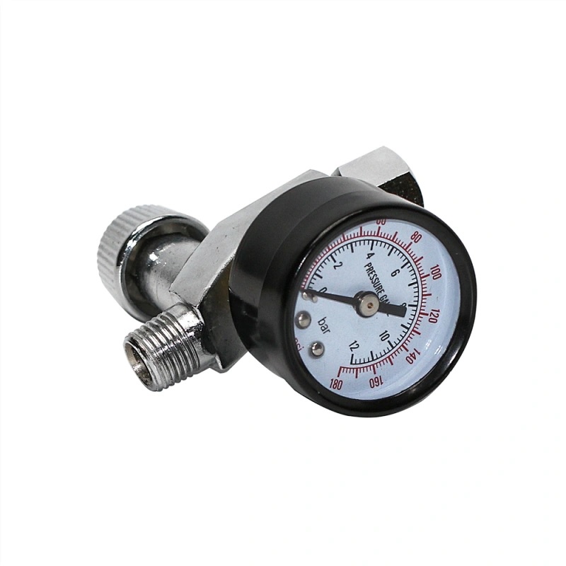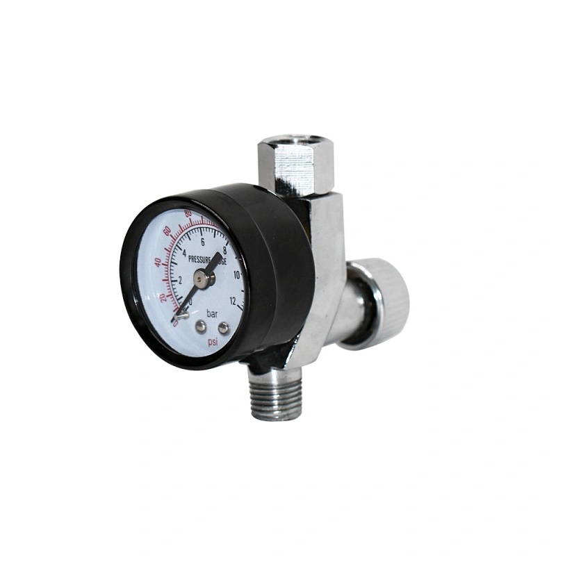 Регулятор давления сжатого воздуха «KRAFT MANO» с механическим стрелочным манометром для определения рабочего давления на краскопульте. Смотровое окно из пластика.