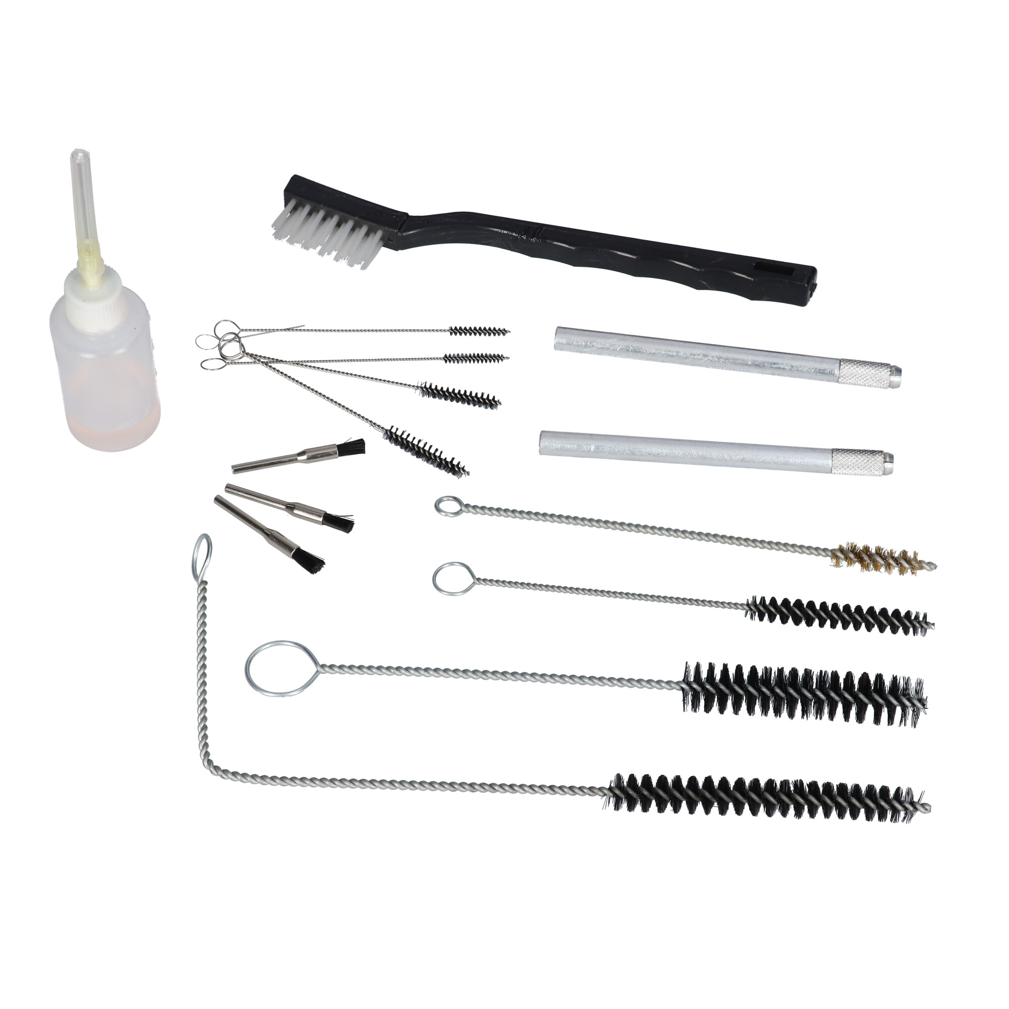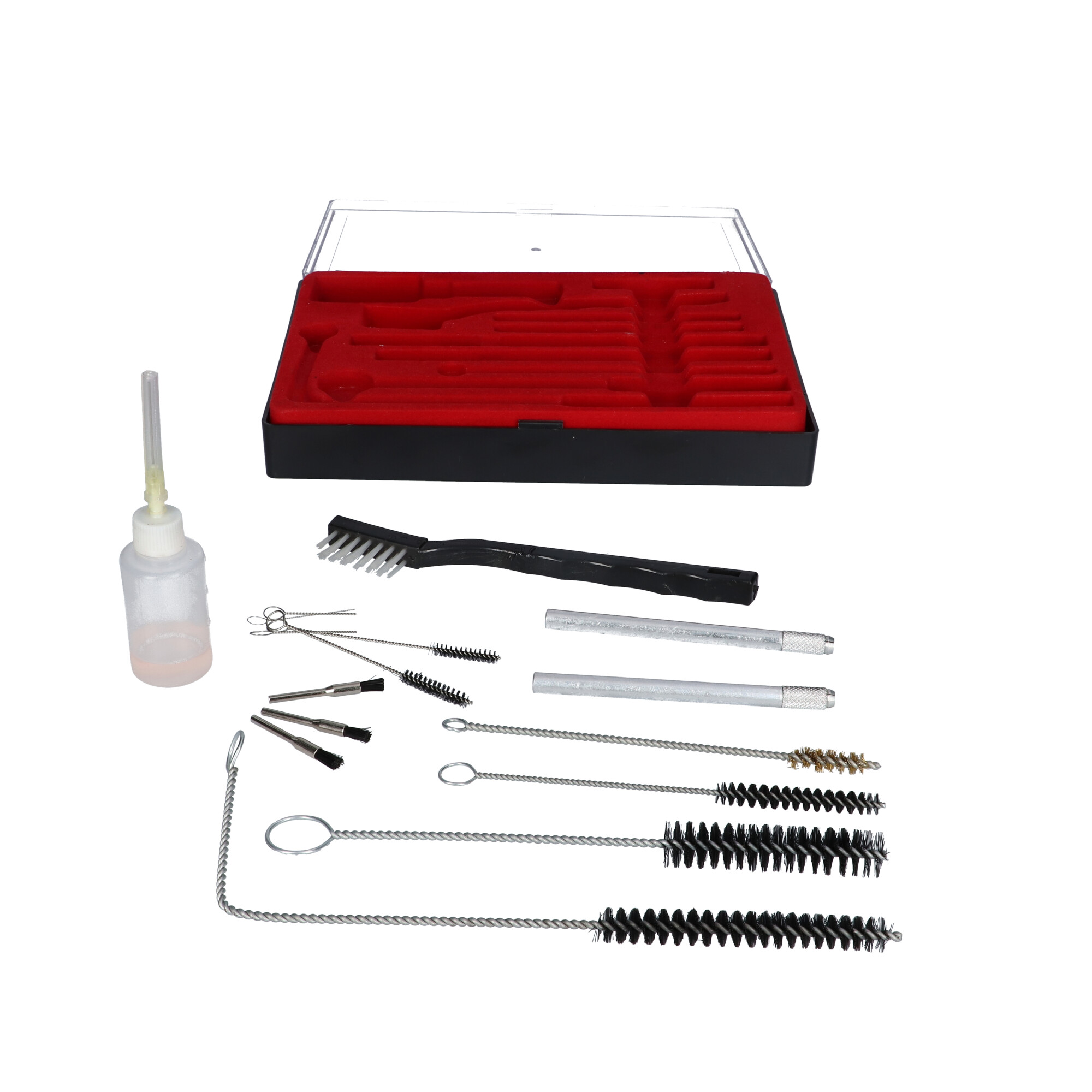 Набор для комплексного ухода за краскопультами. Высокого качества, практический комплект состоит из 21 предмета и предназначен для очистки внутренних элементов пистолета от остатков используемого материала: грунта, краски, лака, В набор входят разнообразные щетки, ершики для очистки воздушной головки, кисти для труднодоступных мест. Экономит рабочий ресурс краскопульта. Подходит для всех типов краскопультов.