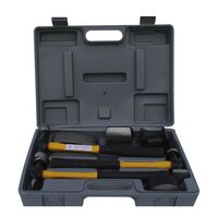 Набор жестянщика из семи предметов, состоит из 3 молотков с характерными плоскостями и 4 рихтовочных наковален (бабок) различной формы. Практичный и эффективный набор для профилирования листового металла. Точно обработанные рабочие плоскости молотков и наковален позволяют качественно выводить кузовные листы. У молотков металлические ручки, а рабочие части изготовлены из очень прочной углеродистой стали.