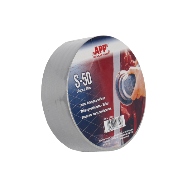 APP S-50 — водостойкая самоклеящаяся лента для защиты соседних поверхностей при шлифовке, резке и других работах при кузовном и малярном ремонте. Благодаря использованию армируюущей ткани с полиэтиленовым покрытием и клея из натурального каучука лента обеспечивает надежную защиту и гарантирует сохранность защищаемой поверхности.